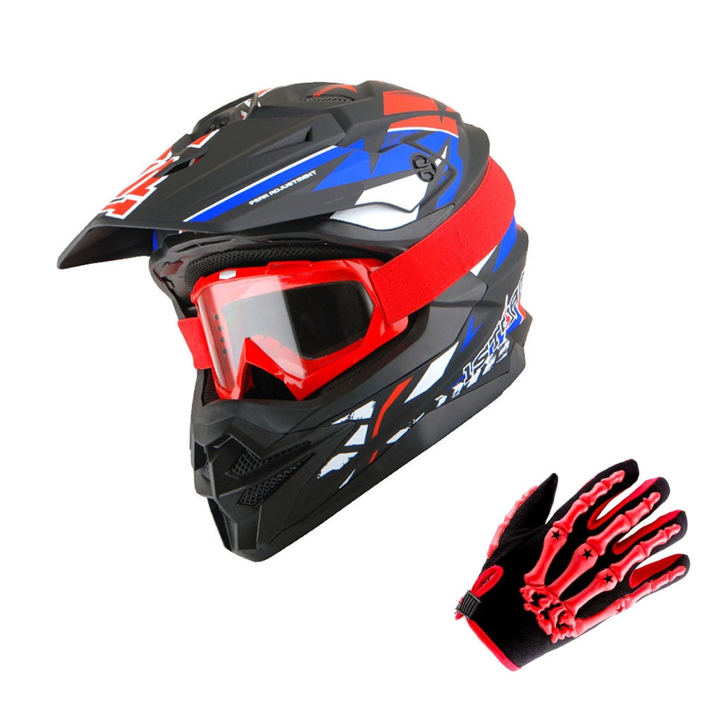 1storm Motocross Adult Helmet Downhill Mountain Bike Helmet Bmx Mx Atv Dirt Bike Storm Style Hf803 Red Blue Goggles Skeleton Red Glove Bundle Walmart Com